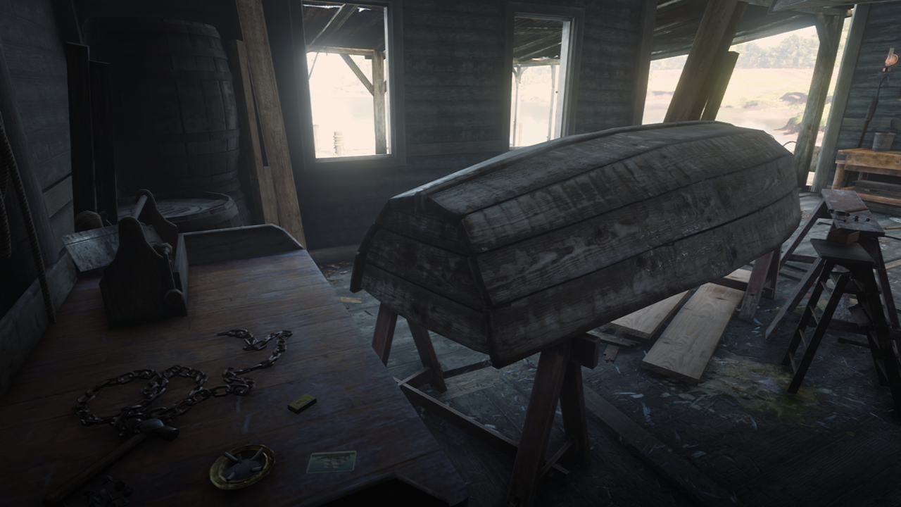 This is the Cigarette Card location for the U.S. Frigate card. Card will be on the work table inside the fisherman house by the water.